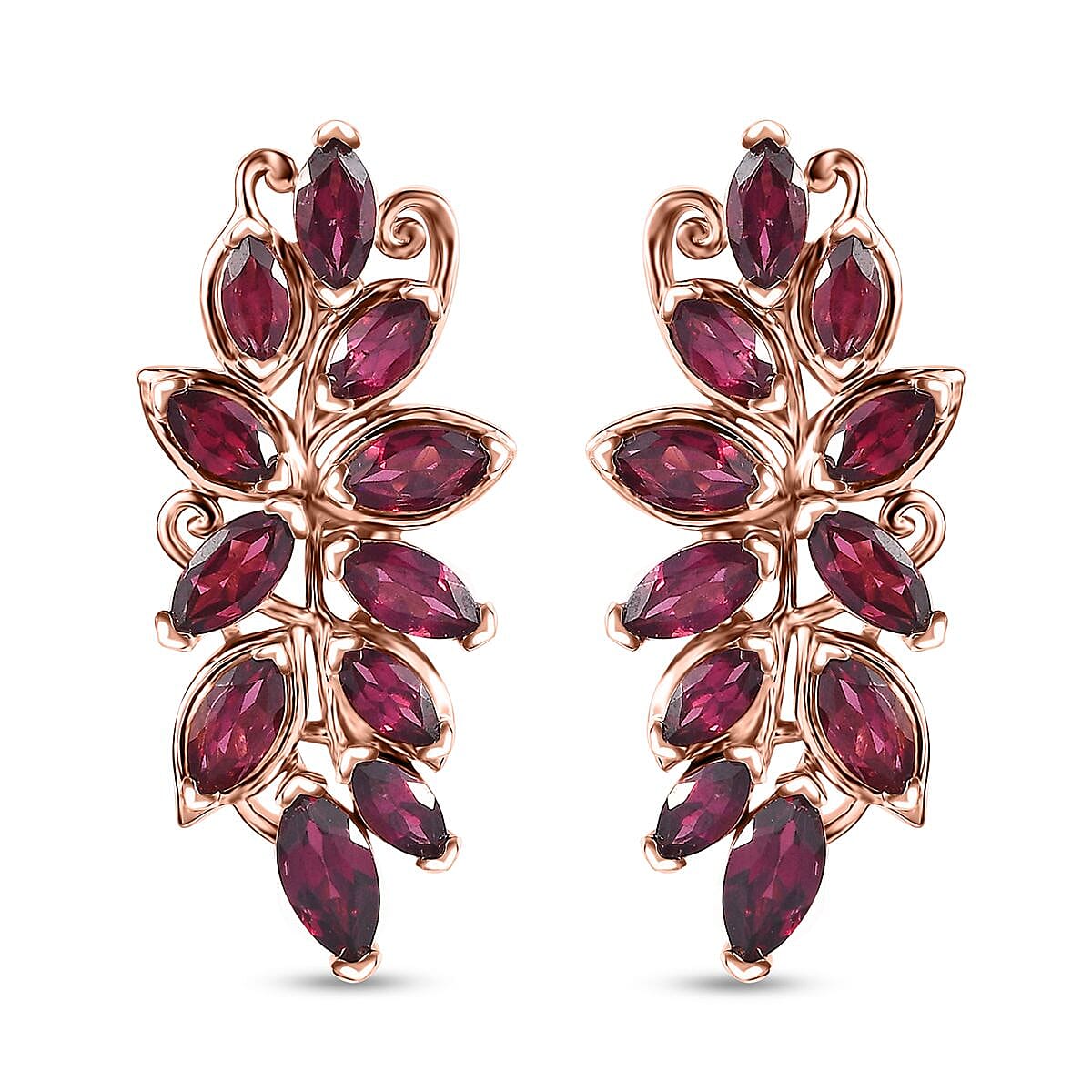Orissa Rhodolite Garnet Leafs Earrings in Vermeil Rose Gold Over Sterling Silver 5.70 ctw