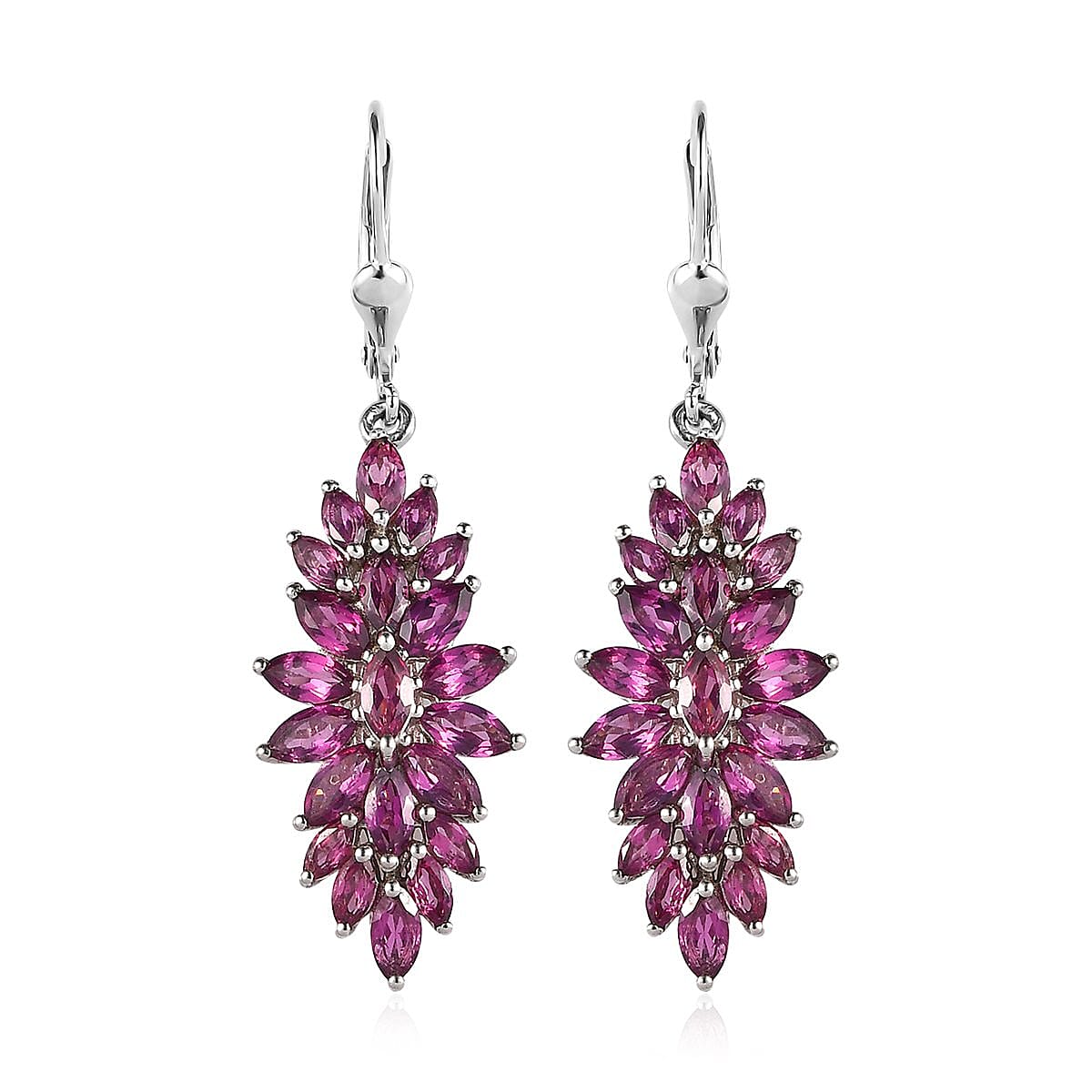 Orissa Rhodolite Garnet Lever Back Earrings in Platinum Over Sterling Silver 6.00 ctw