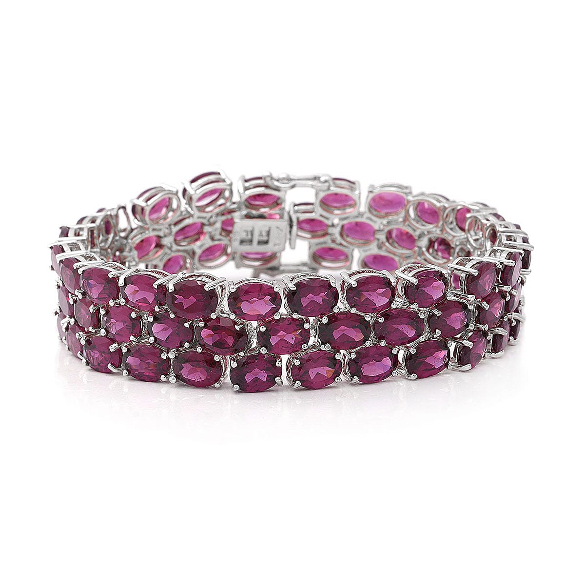 Orissa Rhodolite Garnet Three-row Bracelet in Platinum Over Sterling Silver (7.25 In) 67.65 ctw