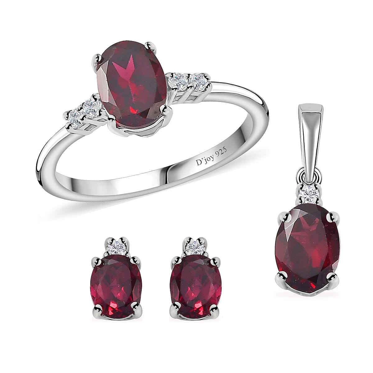 This sterling silver gemstone set provides a coordinated, elegant look for women. It features an oval-shaped gemstone centerpiece accented with sparkling round white zircon. The set includes a ring, pendant, and earrings, all crafted in sterling silver, which is known for its durability and hypoallergenic properties.