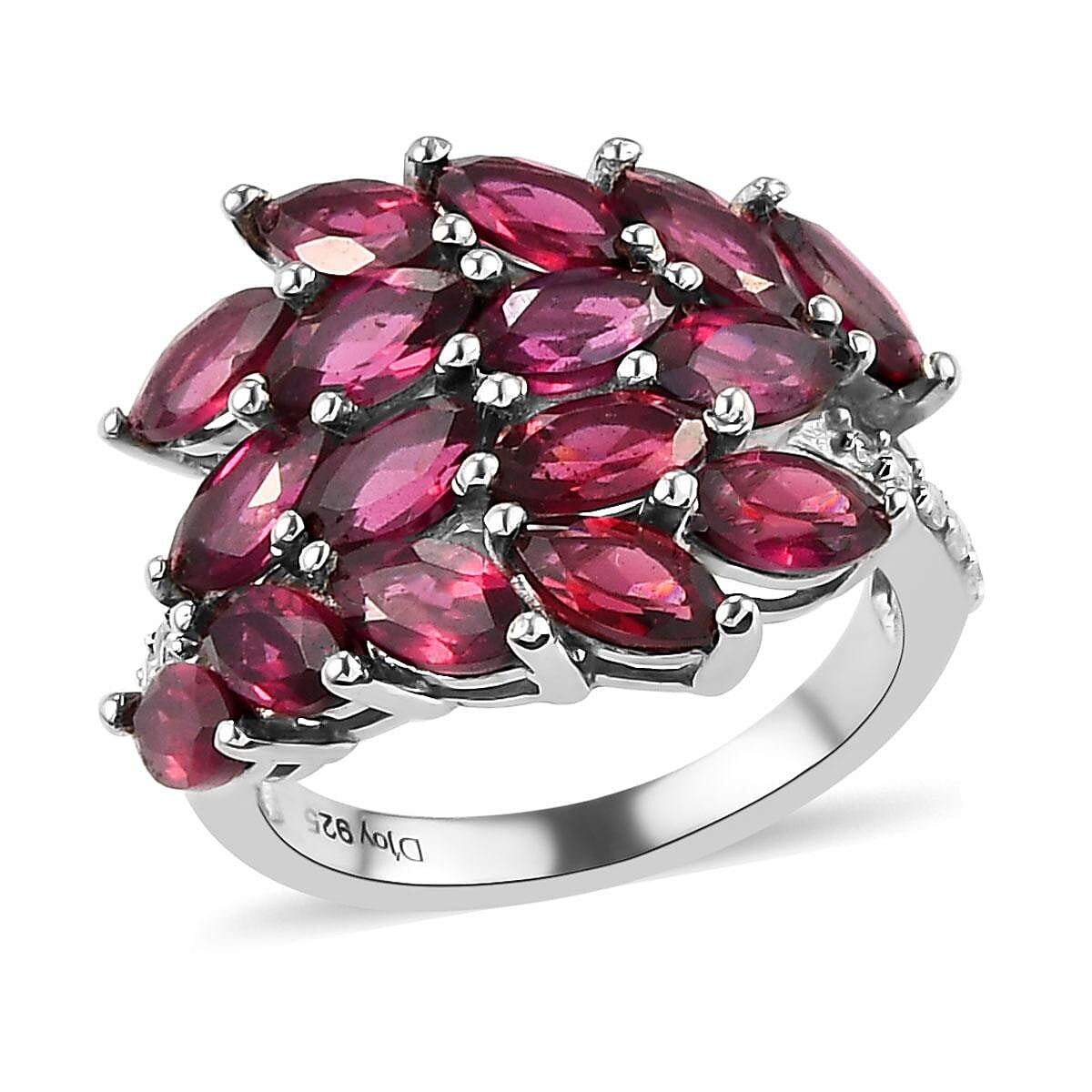 Orissa Rose Garnet and Natural White Zircon Floral Ring in Platinum Over Sterling Silver (Size 7.0) 5.60 ctw