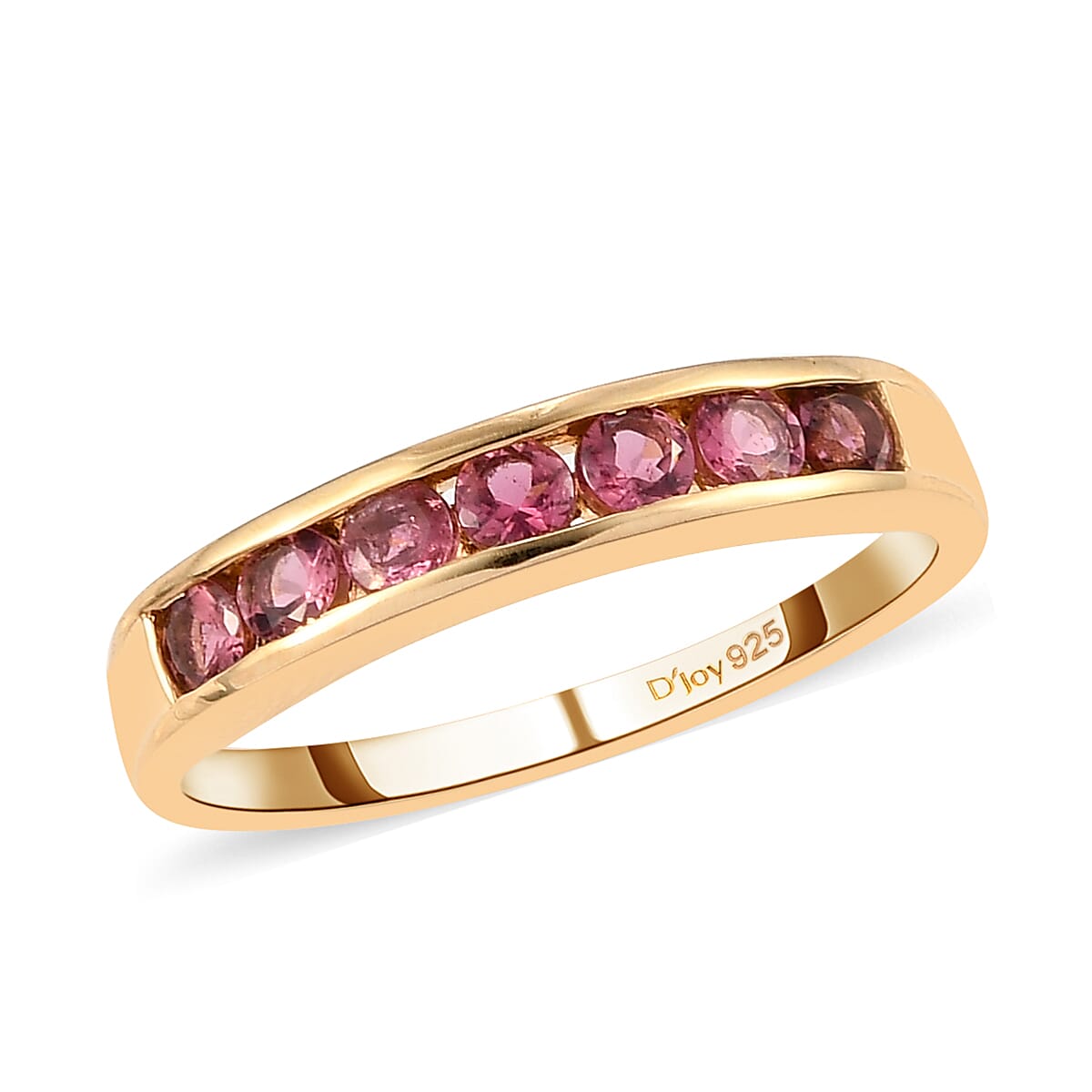 Ouro Fino Rubellite 7 Stone Band Ring in Vermeil Yellow Gold Over Sterling Silver (Size 6.0) 0.75 ctw