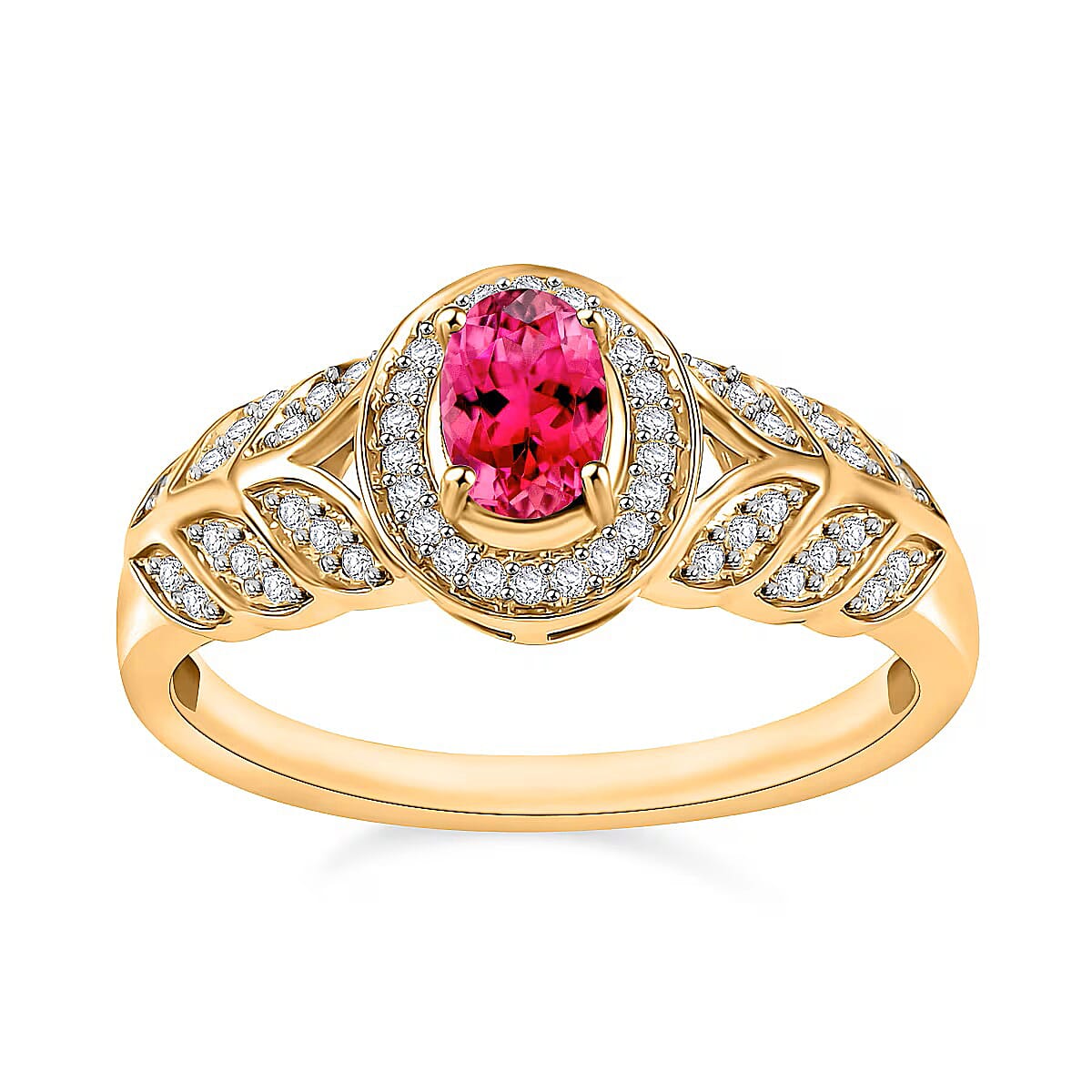 Ouro Fino Rubellite and Moissanite 0.82 ctw Ring in 18K Vermeil Yellow Gold Over Sterling Silver (Size 11.0) (Del. in 10-12 Days)