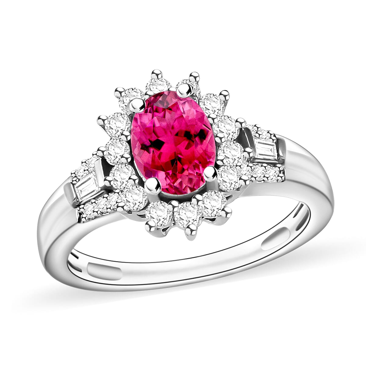Ouro Fino Rubellite and Moissanite 1.25 ctw Sunburst Ring in Rhodium Over Sterling Silver (Size 6.0) (Del. in 10-12 Days)
