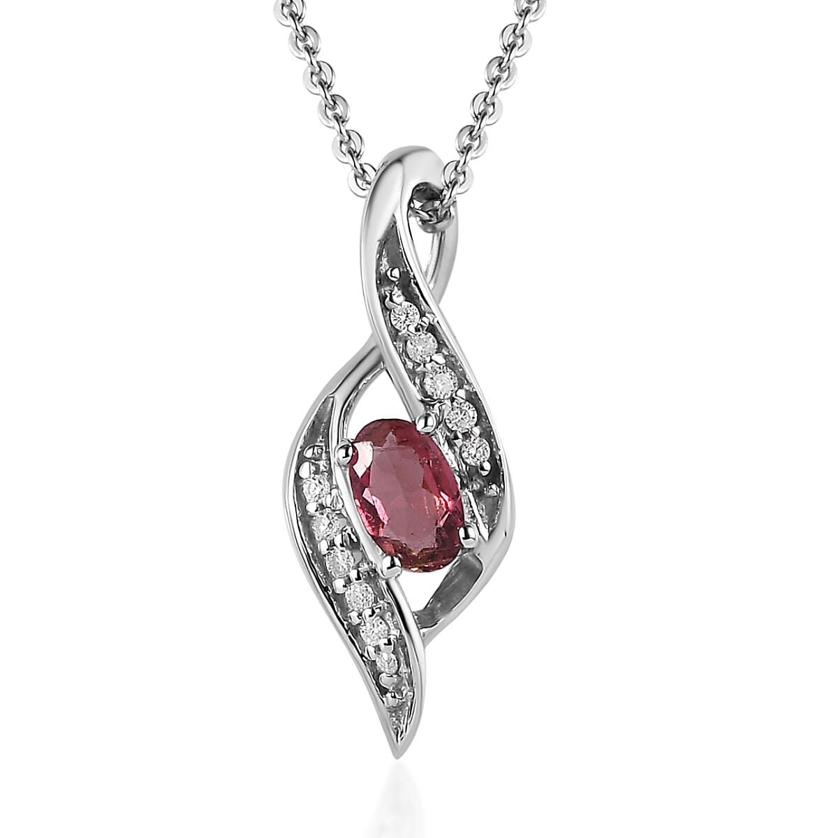 Ouro Fino Rubellite and Moissanite Pendant Necklace 20 Inches in Platinum Over Sterling Silver 0.30 ctw