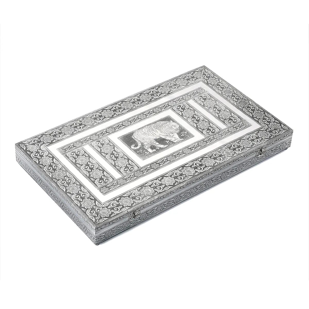 Discover the perfect home for your precious treasures with our exquisite oxidized jewelry box. Crafted to perfection, this jewelry box combines timeless beauty with practicality. Its silver exterior boasts an embossed tiger pattern that adds a touch of sophistication to any space. This storage offers ample storage with specialized ring rows. The aluminum exterior ensures durability while the velvet interior provides a plush haven for your jewelry. With anti-tarnish and scratch-resistant features, this jewelry box is not just a storage solution; it's a piece of art designed to protect and display your cherished pieces.