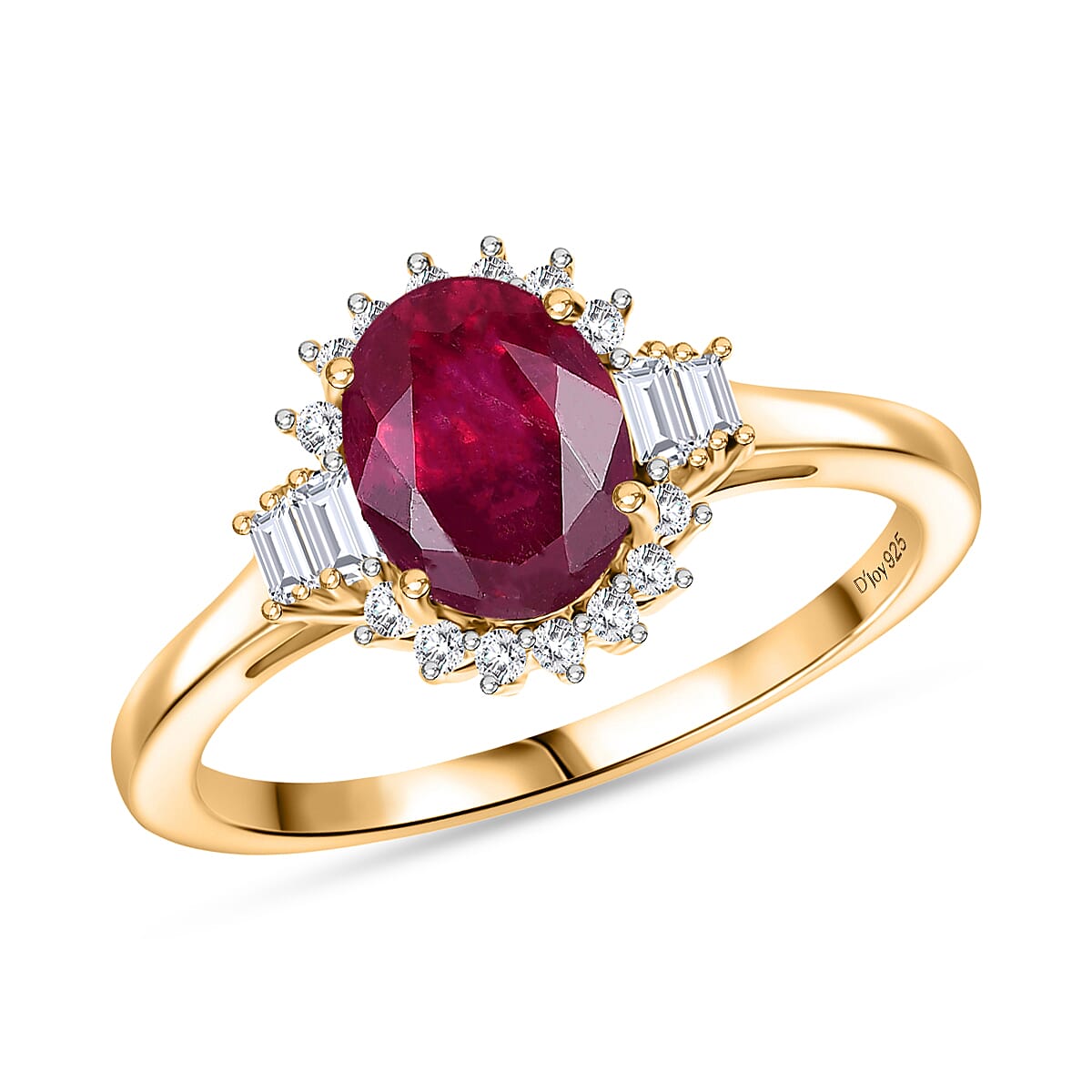 D'Joy AAA African Ruby (FF) and Multi Gemstone 3.00 ctw Ring in 18K YG Plated Sterling Silver (Size 9.5)