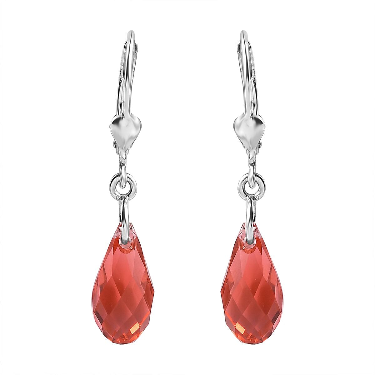 Padparasha Crystal Lever Back Earrings in Sterling Silver
