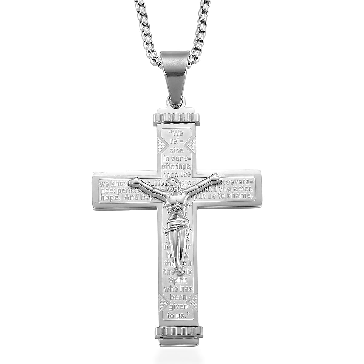 Padre Nuestro Cross Mens Pendant Necklace (23.5 Inches) in Stainless Steel