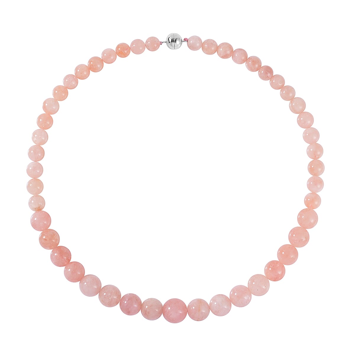 Palmeiras Pink Morganite Beaded Necklace 20 Inches in Rhodium Over Sterling Silver 450.00 ctw