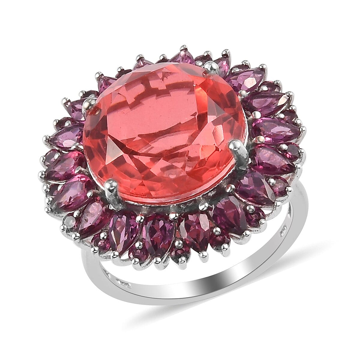 Papaya Quartz (Triplet) and Orissa Rhodolite Garnet Ring in Platinum Over Sterling Silver (Size 10.0) 13.25 ctw