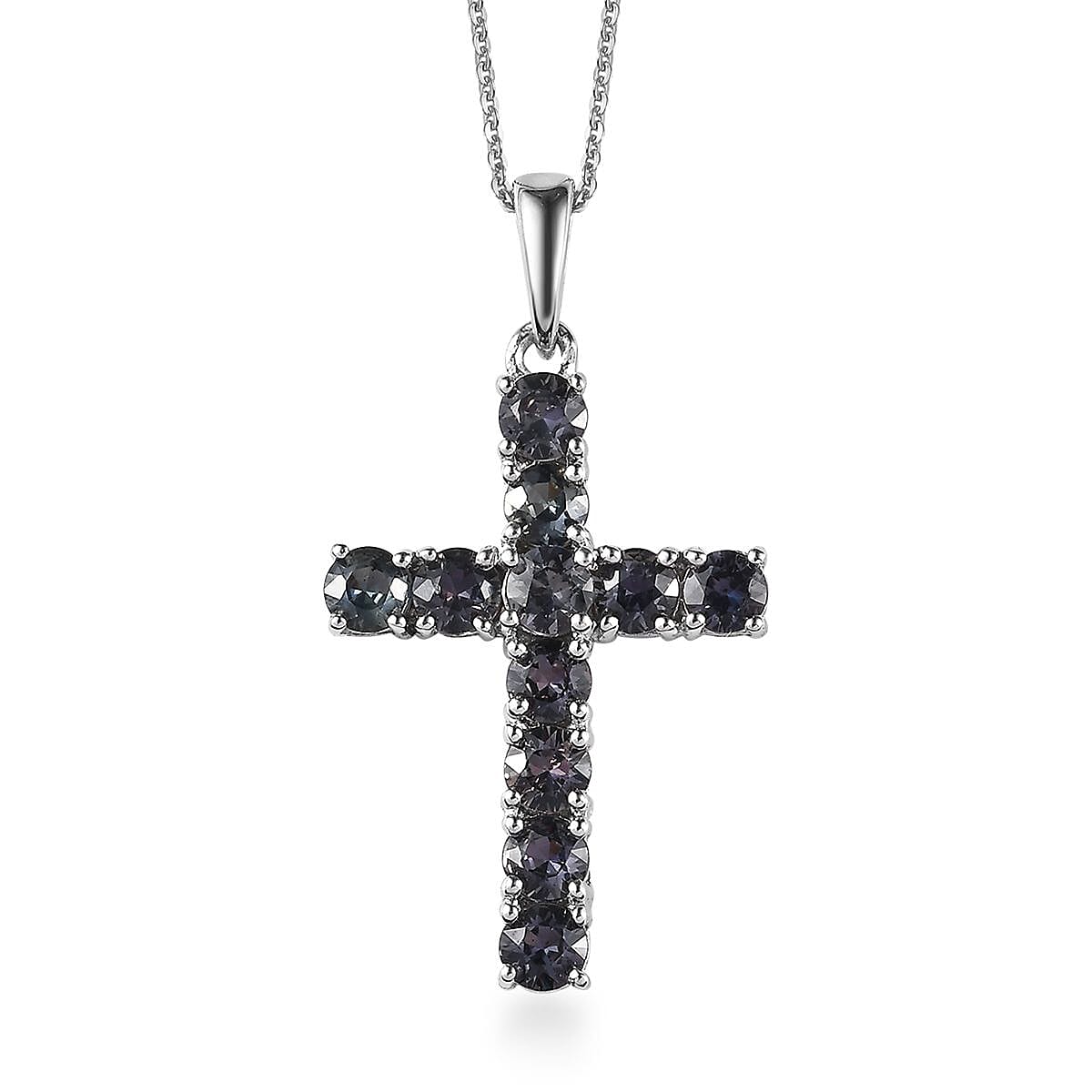 Parti Sapphire Cross Pendant Necklace (20 Inches) in Platinum Over Sterling Silver 3.50 ctw