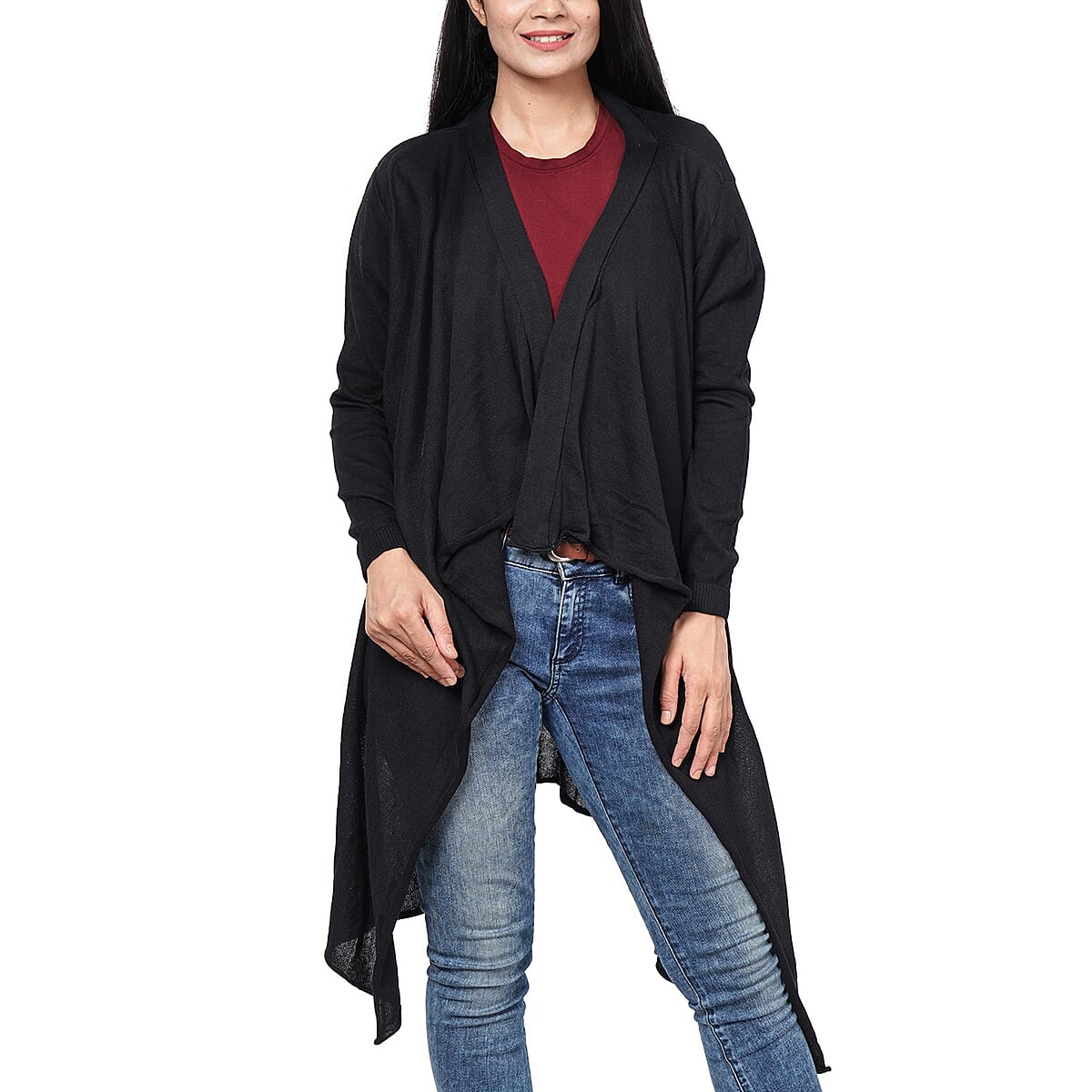 Passage 100% Cotton Knit Black Long Sleeve Waterfall Cardigan (L)