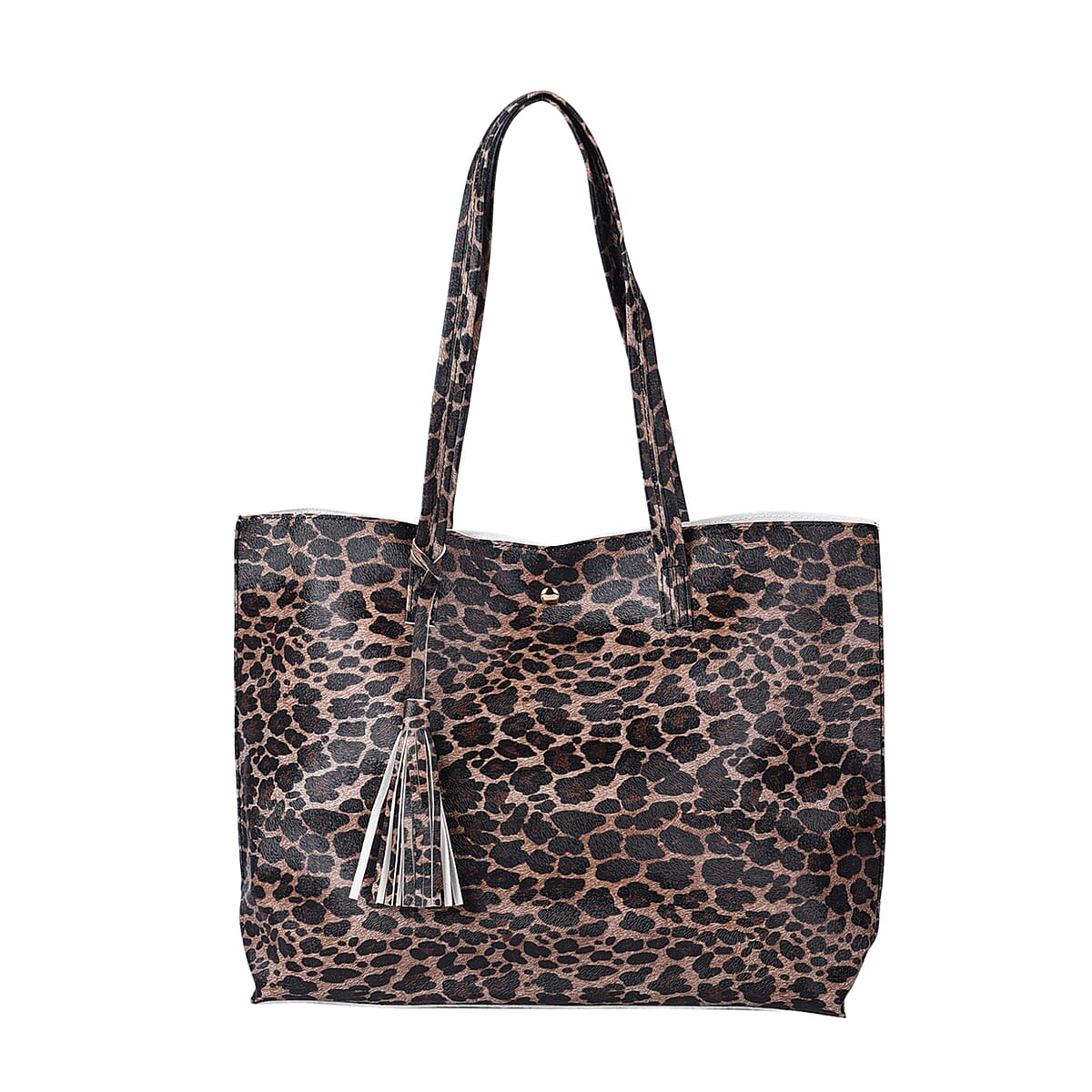 Passage Brown Leopard Pattern Faux Leather Tote Bag with Handle Drop