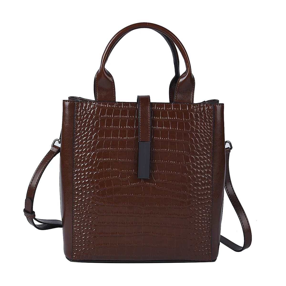 Accessorize your glamorous outfits with this stylish leather tote bag. This designer leather tote features a crocodile pattern with spacious capacity, arched handles, and a double strap. This essential tote bag is an excellent choice for regular use. Carry this designer tote bag with you when heading outdoors, casual meets, shopping, traveling, or more.