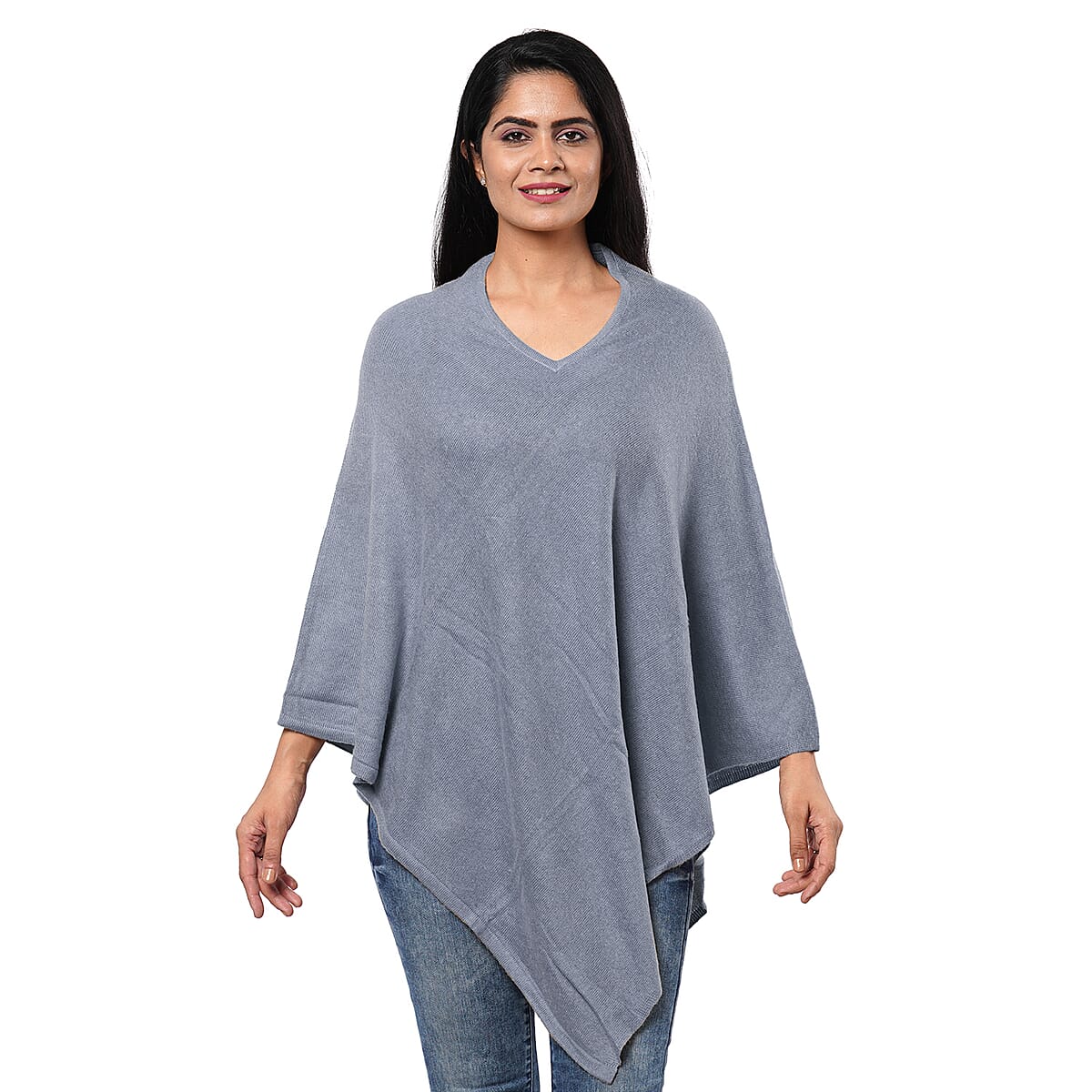 Passage Light Gray 100% Cashmere Woolen Poncho for Women , Cashmere Poncho , Women Capes , Poncho Scarf