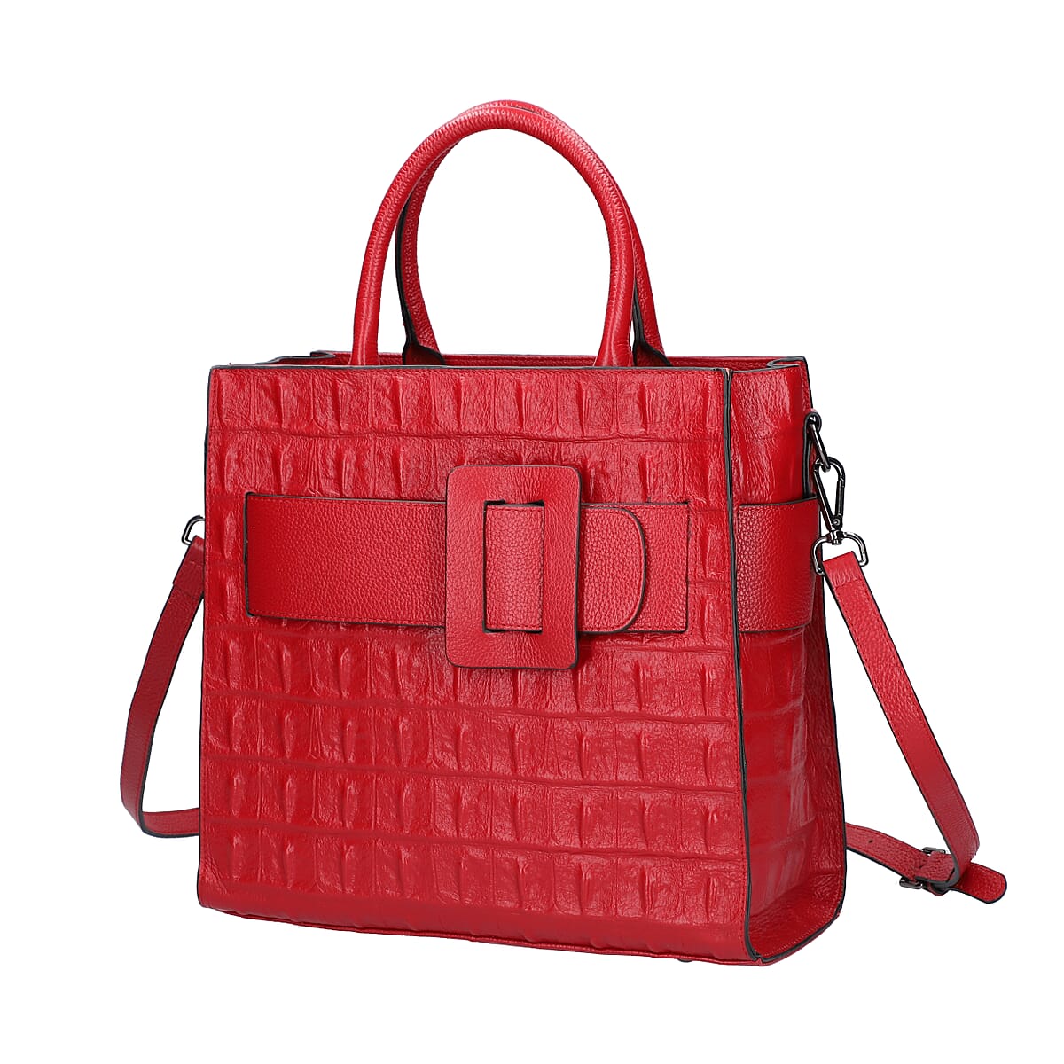 Passage Red Crocodile Skin Pattern Genuine Leather Middle Size Tote Bag