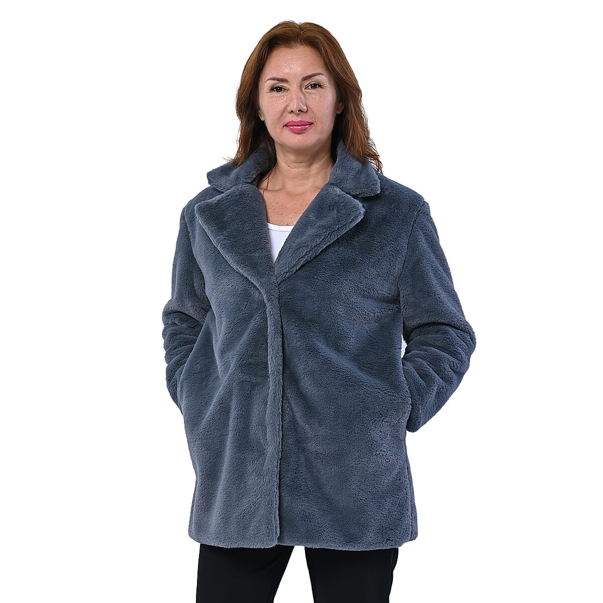Passage Solid Dark Gray Faux Fur Oversized Coat For women - L