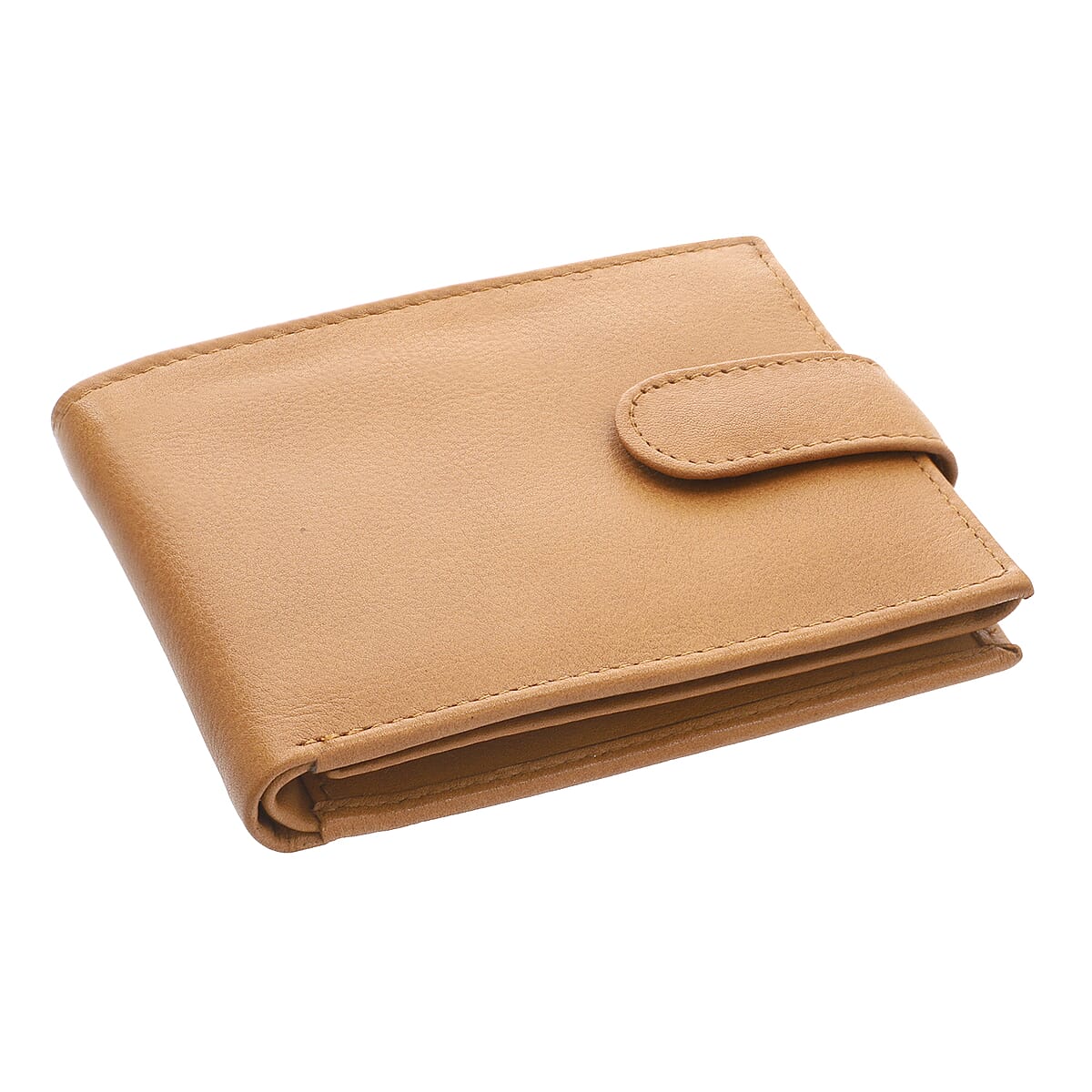 Passage Tan Genuine Leather RFID Bi-Fold Men's Wallet with Snap Closure