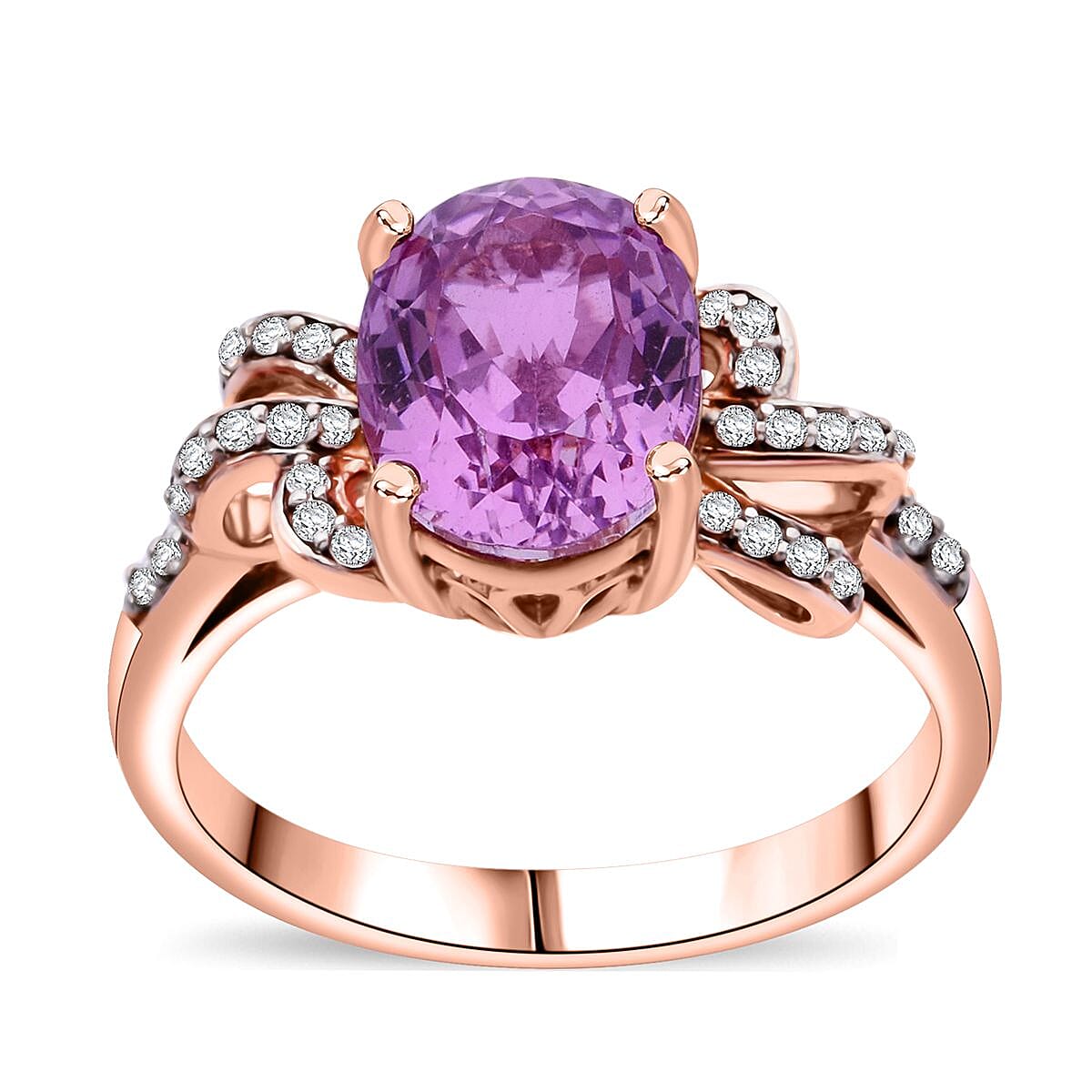 Patroke Kunzite and Moissanite 3.75 ctw Love Knot Ring in Vermeil Rose Gold Over Sterling Silver (Size 7.0)