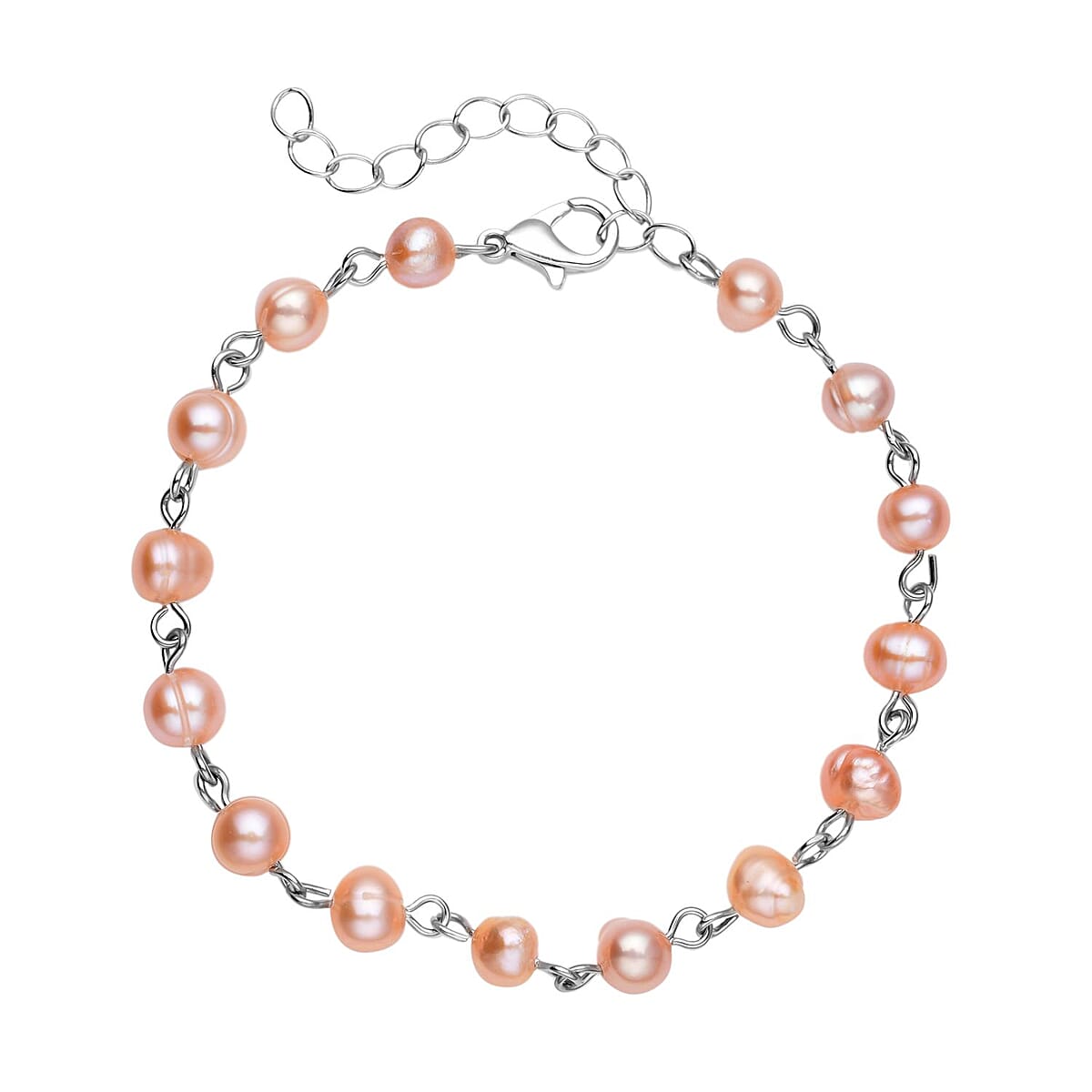 Peach Freshwater Cultured Pearl Anklet (8-10 In) in Silvertone