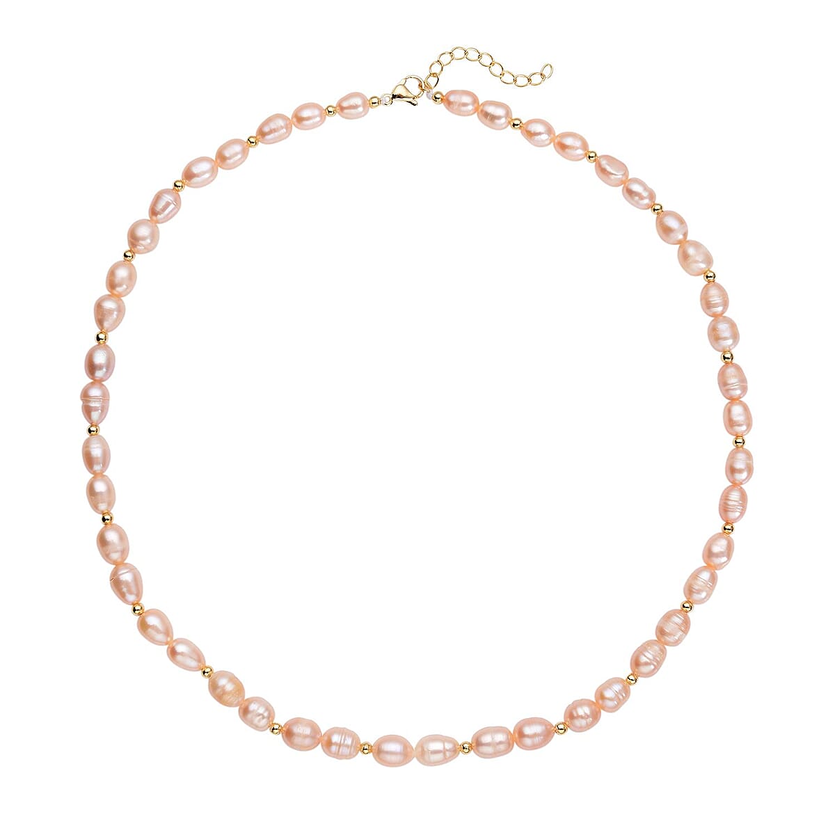 Peach Freshwater Pearl 6-8mm Necklace (18-20 Inches) in Goldtone