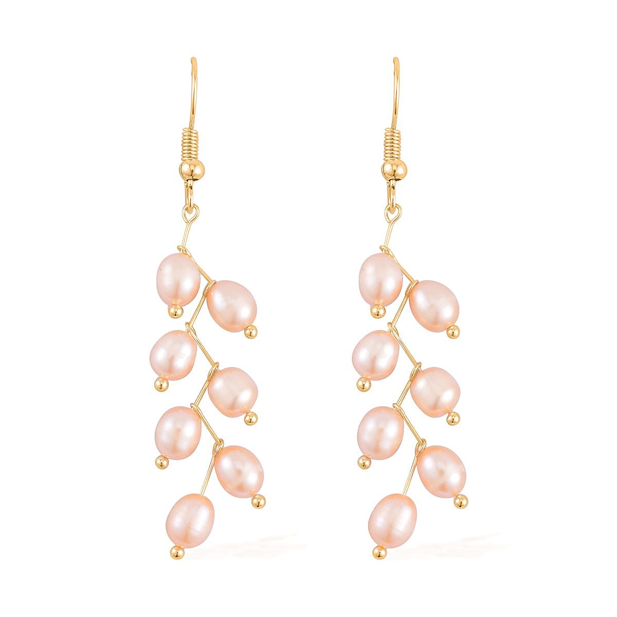 Peach Freshwater Pearl Dangle Earrings in Goldtone