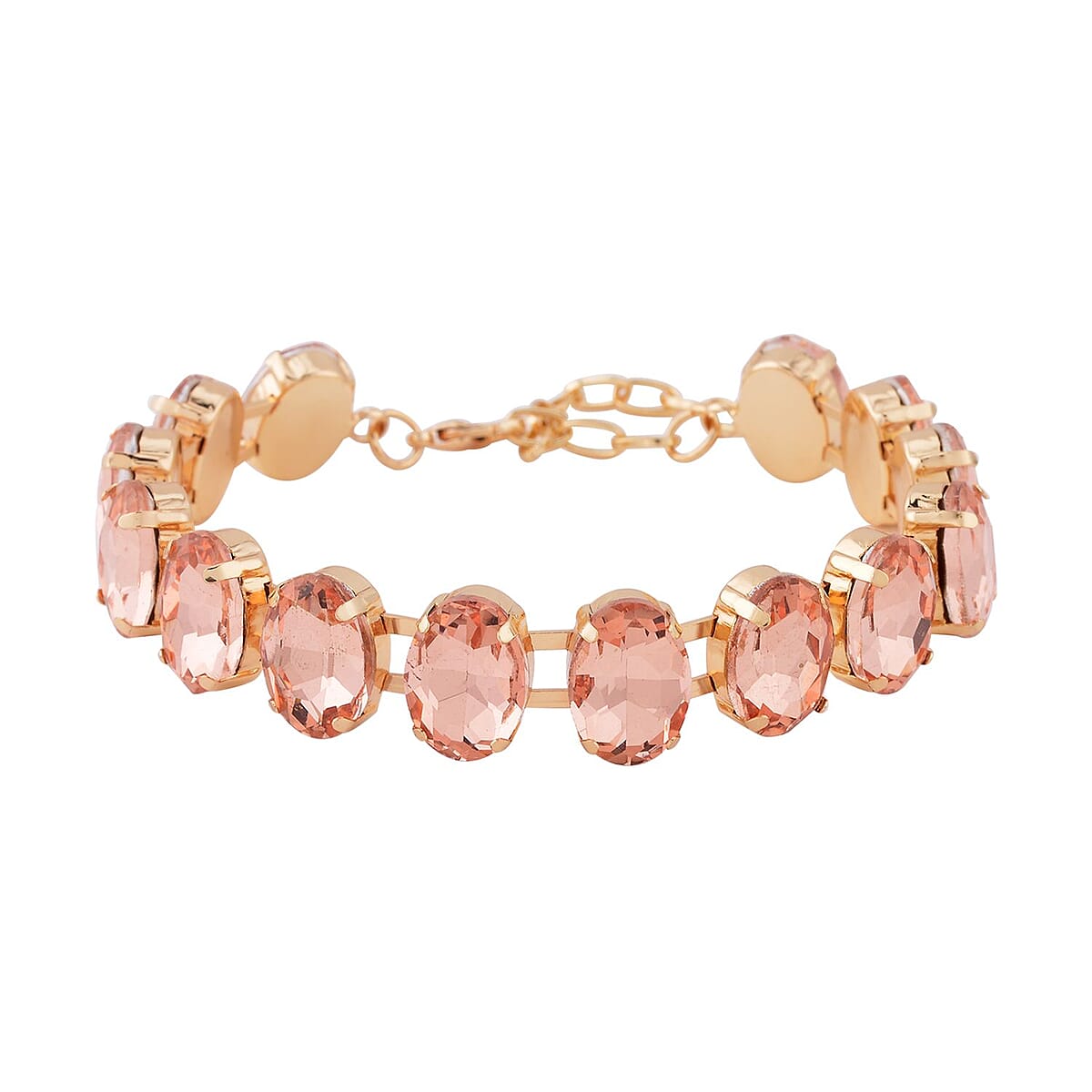 Peach Glass Tennis Bracelet in Goldtone (7.5-9.5In)