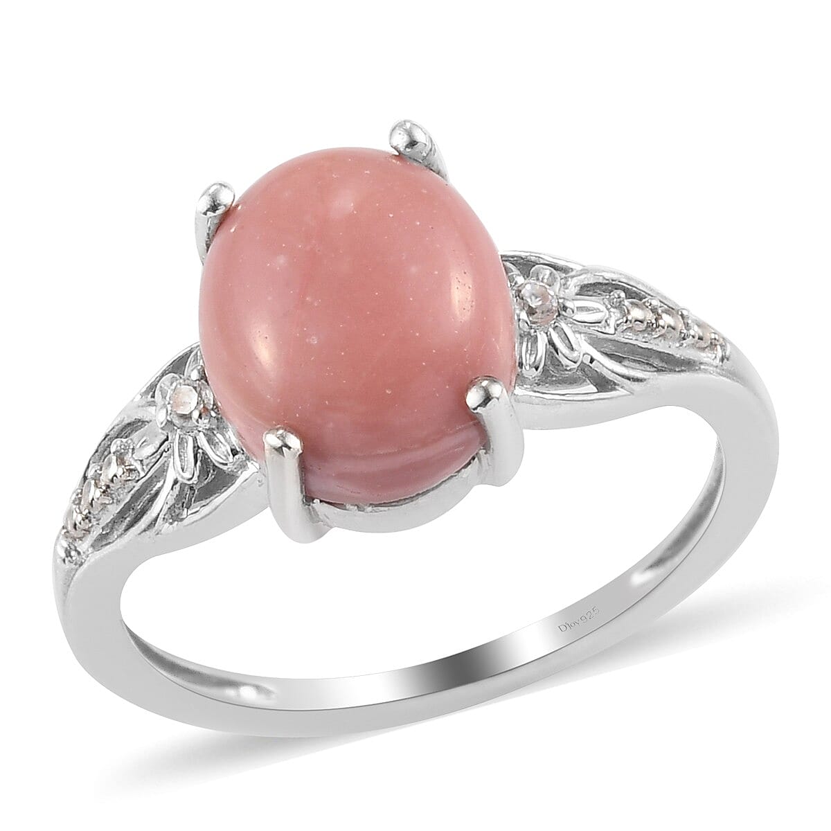 Peach Opal and Zircon Ring in Platinum Over Sterling Silver (Size 8.0) 1.80 ctw