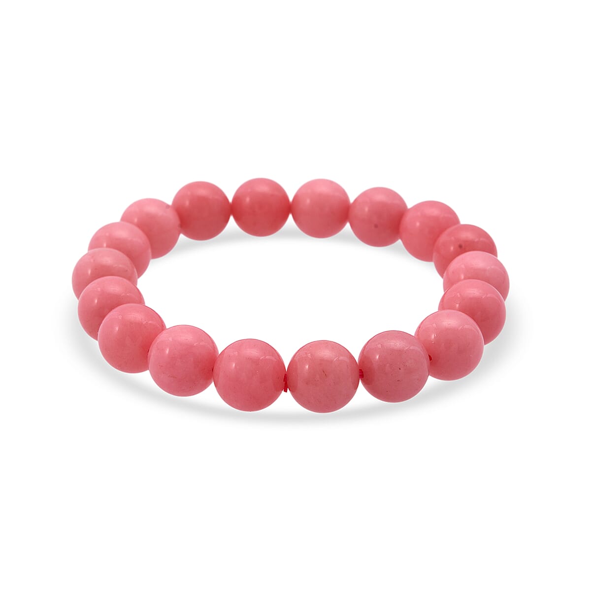 Peach Pink Color Chalcedony 139.50 ctw Beaded Stretch Bracelet