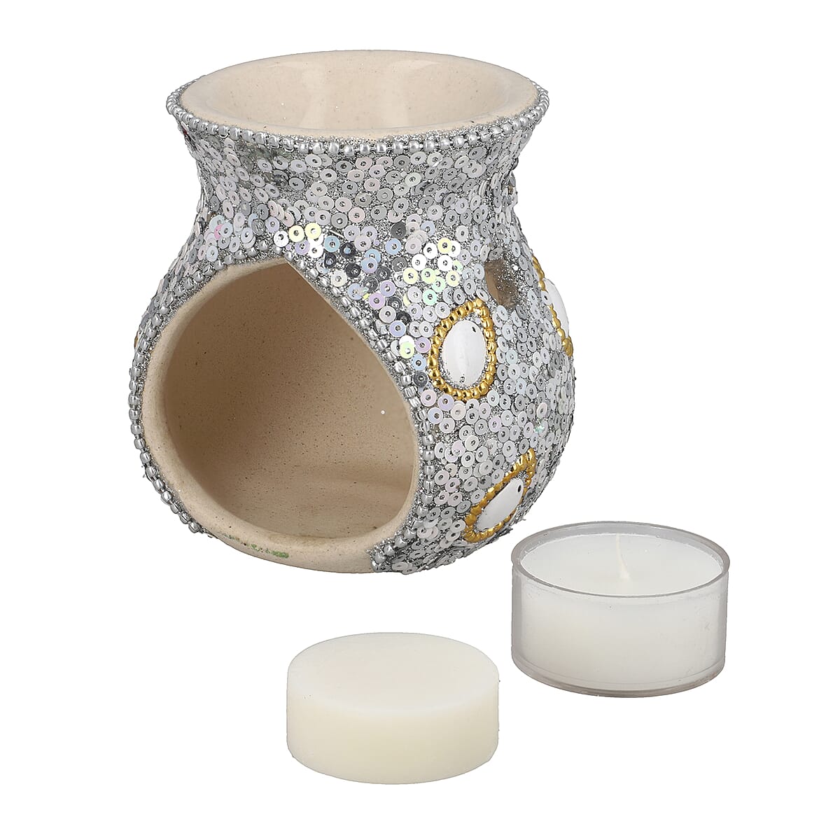 Peacock 3pc Wax Burner Gift Pack -Sandalwood, Ceramic Fragrance Diffuser, Tealight Candle Holder, Essential Oil Burner