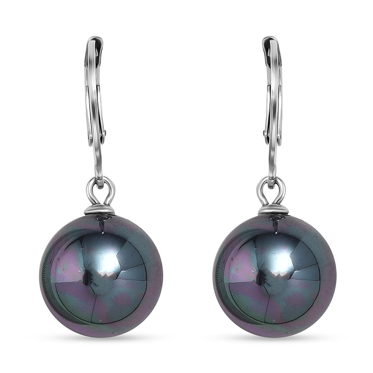Peacock Color Shell Pearl Dangling Earrings in Stainless Steel