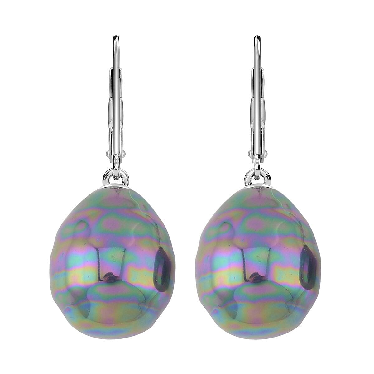 Peacock Color Shell Pearl Lever Back Earrings in Rhodium Over Sterling Silver