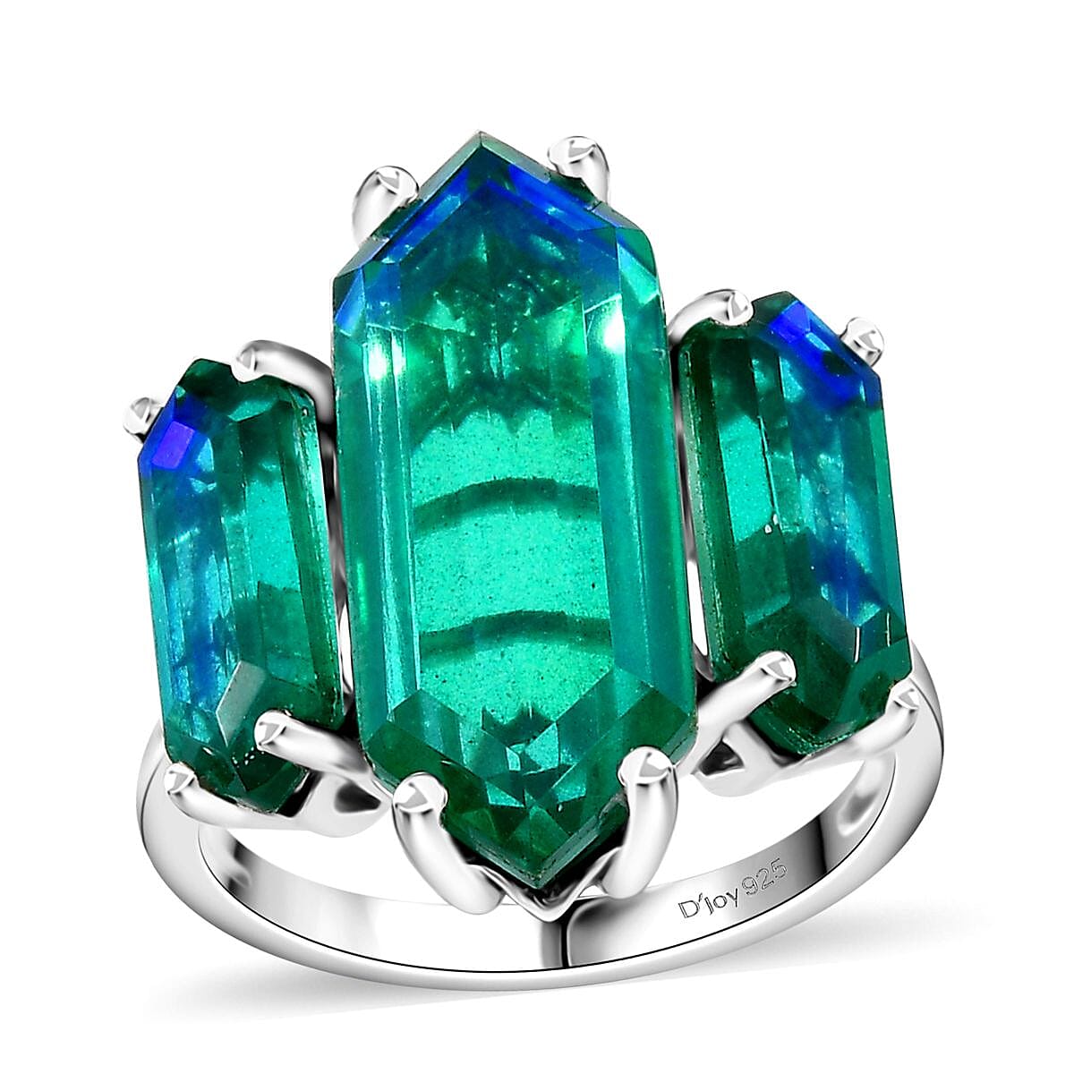 Peacock Quartz 11.30 ctw 3 Stone Ring in Rhodium Over Sterling Silver (Size 6.0)