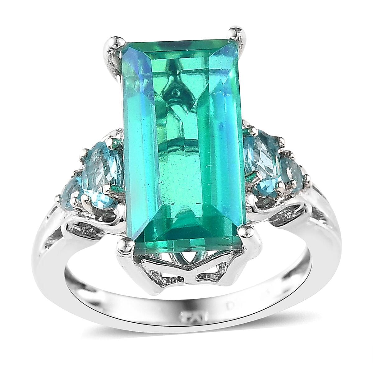 Peacock Quartz (Triplet) and Madagascar Paraiba Apatite Ring in Platinum Over Sterling Silver (Size 10.0) 7.50 ctw