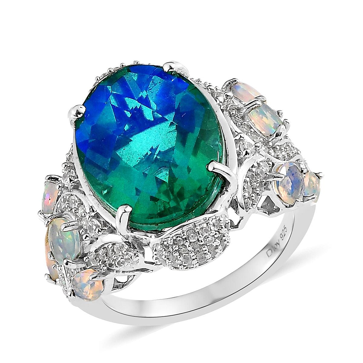 Peacock Quartz (Triplet) and Multi Gemstone Ring in Platinum Over Sterling Silver (Size 7.0) 14.50 ctw