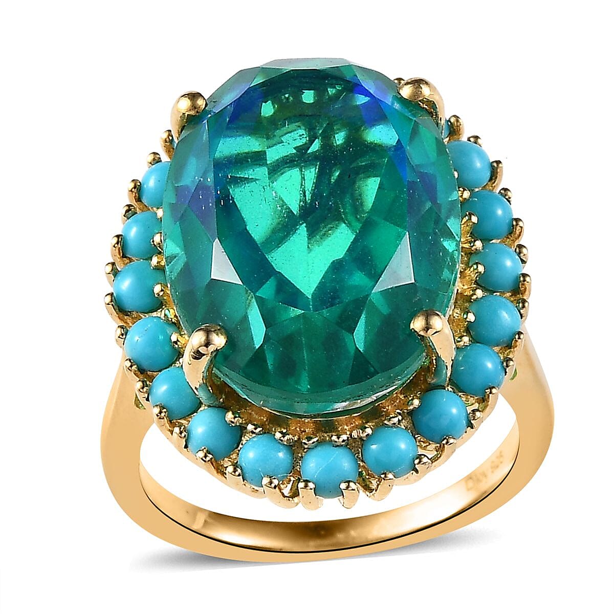 Peacock Quartz (Triplet) and Sleeping Beauty Turquoise Halo Ring in Vermeil Yellow Gold Over Sterling Silver (Size 10.0) 16.15 ctw