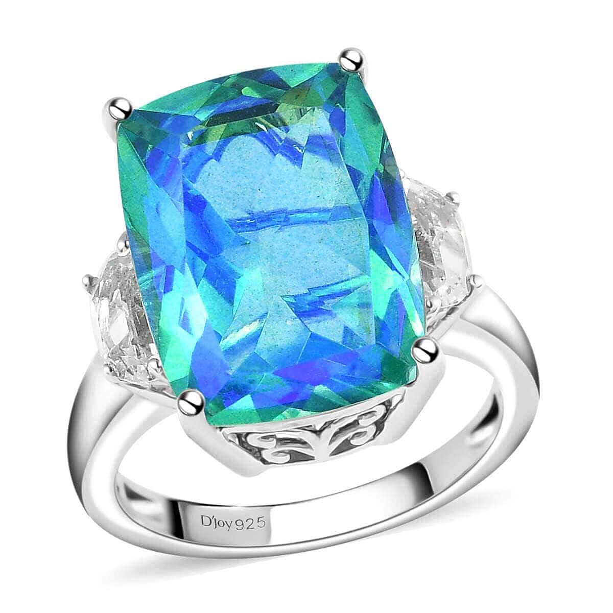 Peacock Quartz (Triplet) and White Topaz Ring in Platinum Over Sterling Silver, Triplet Quartz Jewelry, Birthday Gifts For Her 11.80 ctw