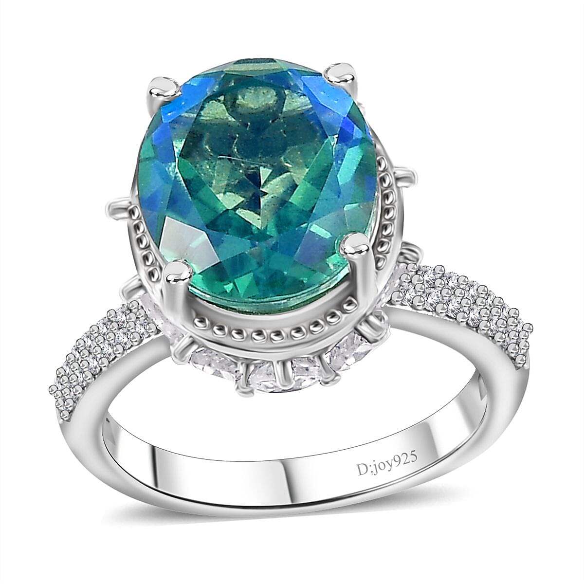 Peacock Quartz (Triplet) and White Zircon Ring in Platinum Over Sterling Silver (Size 9.0) 7.90 ctw