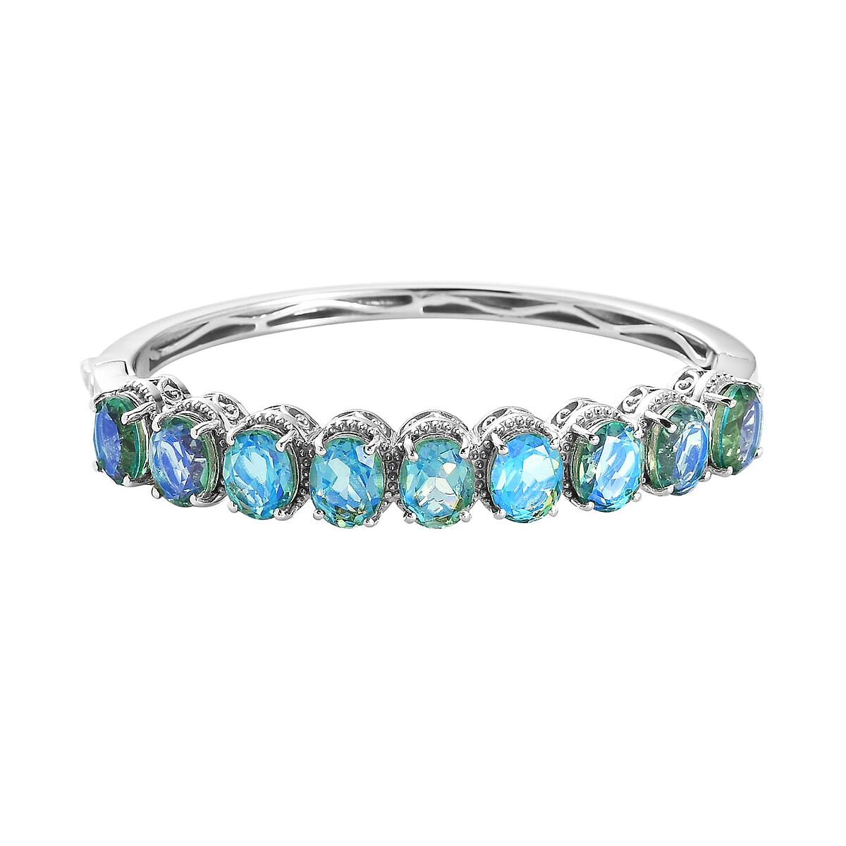 Peacock Quartz (Triplet) Bangle Bracelet in Platinum Over Sterling Silver (6.50 In) 18.90 ctw