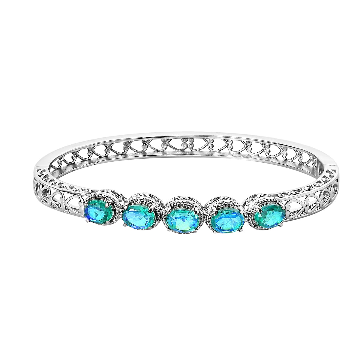 Peacock Quartz (Triplet) Bangle Bracelet in Stainless Steel (8.00 In) 7.25 ctw