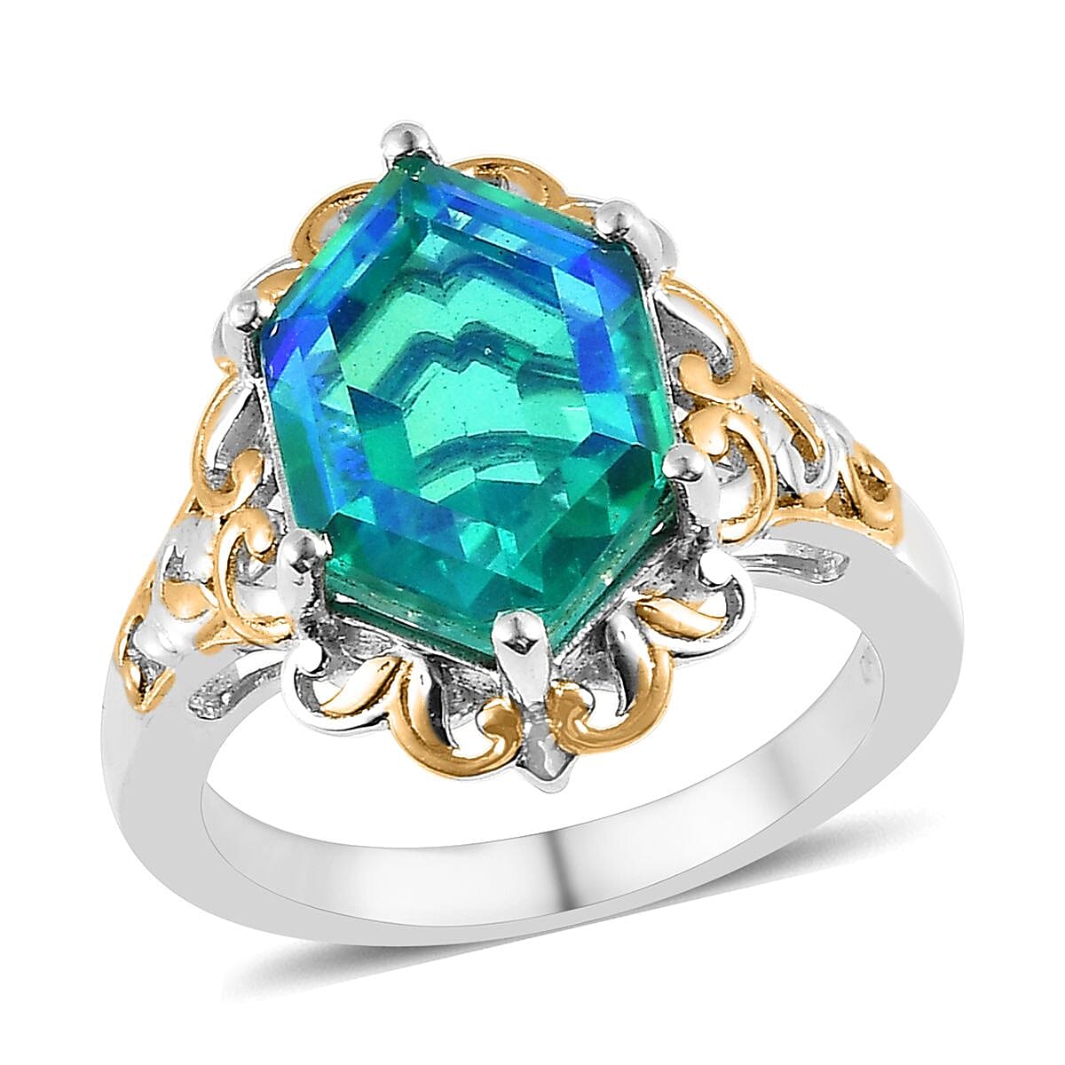 Peacock Quartz (Triplet) Solitaire Ring in Vermeil YG and Platinum Over Sterling Silver (Size 6.0) 5.90 ctw