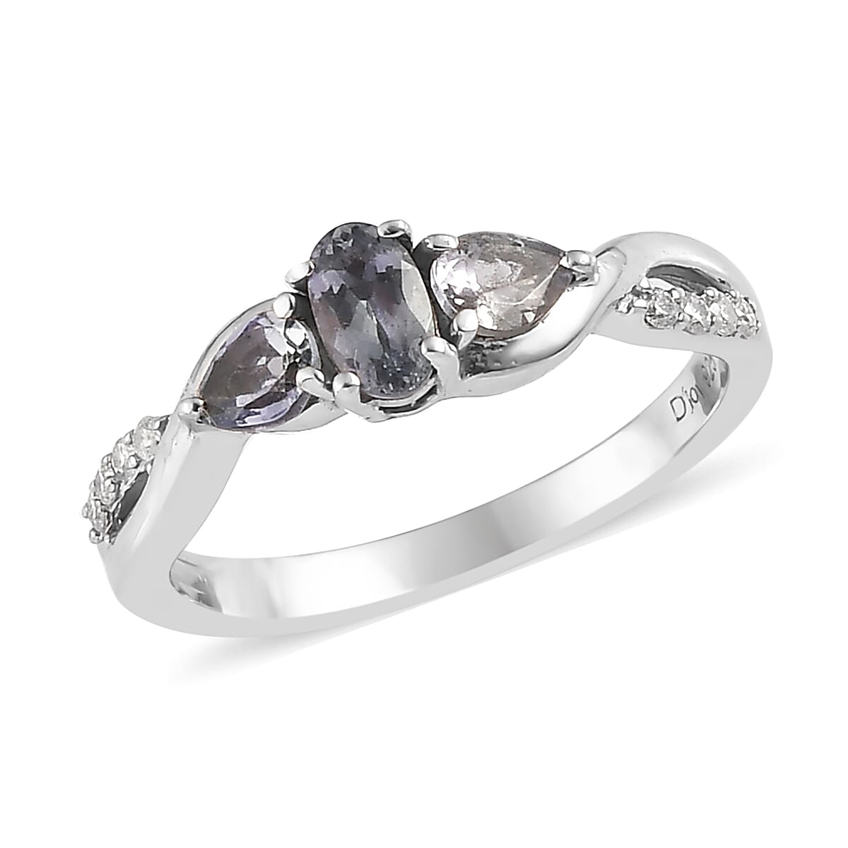 Peacock Tanzanite and Moissanite Infinity Ring in Platinum Over Sterling Silver (Size 8.0) 0.65 ctw