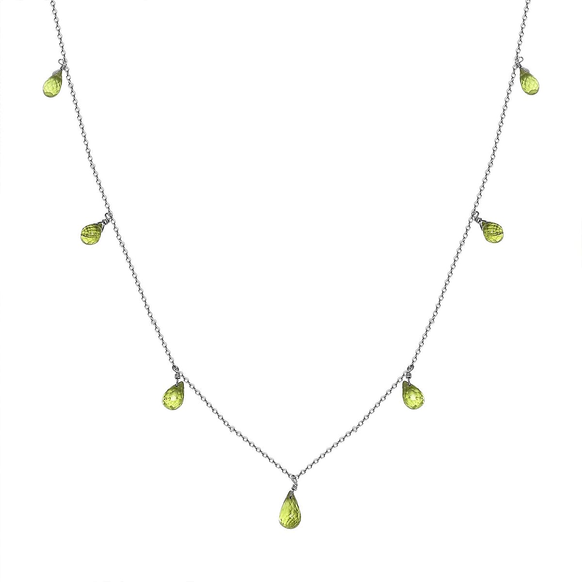 Peridot 7.10 ctw Station Necklace in Rhodium Over Sterling Silver 20 Inches