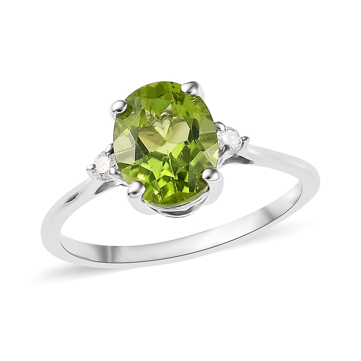 Indulge in a burst of brilliance and sophistication with our peridot and diamond ring in platinum over sterling silver, a captivating masterpiece that effortlessly merges luxury and style. Crafted to perfection, this exquisite ring is more than just jewelry; it's a testament to your distinctive taste and penchant for elegance. Elevate your ensemble with the enchanting allure of peridot and diamonds, set against the timeless backdrop of platinum over sterling silver.