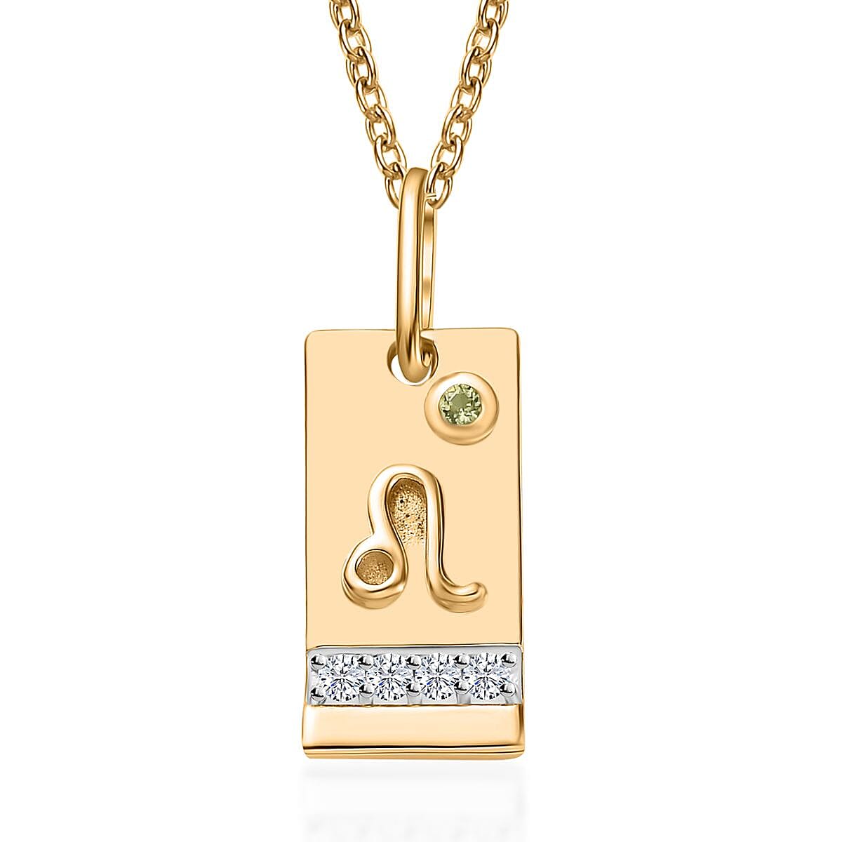 Peridot and Moissanite Leo Zodiac Medallion Pendant Necklace 20 Inches in Vermeil Yellow Gold Over Sterling Silver 0.20 ctw