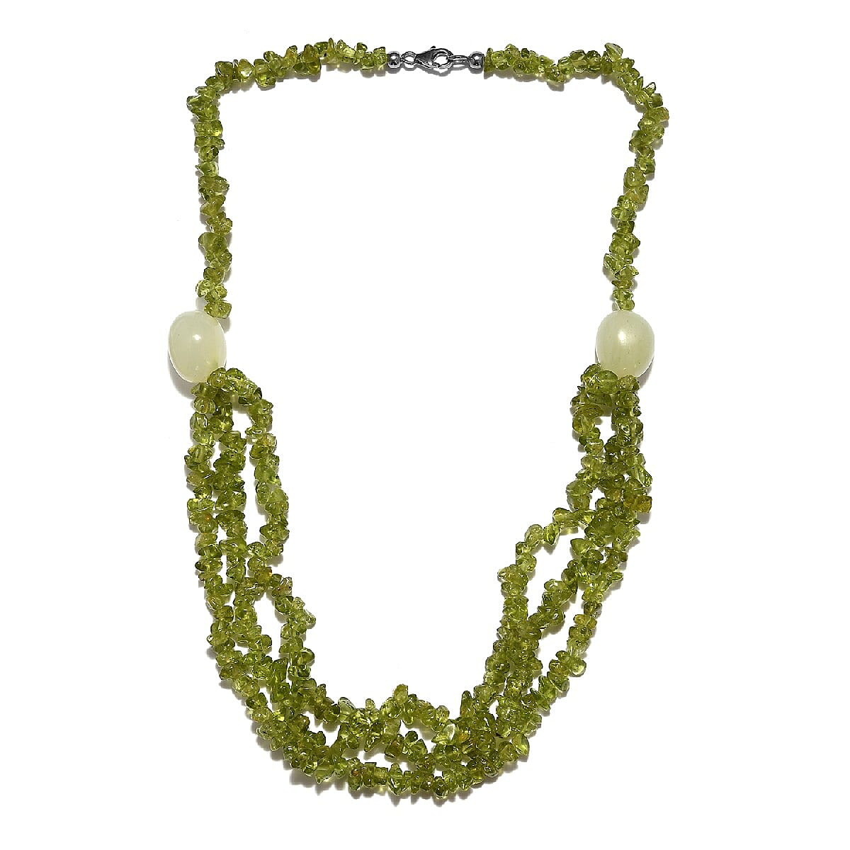Peridot and Prehnite Beaded Necklace 20 Inches in Platinum Over Sterling Silver 306.60 ctw