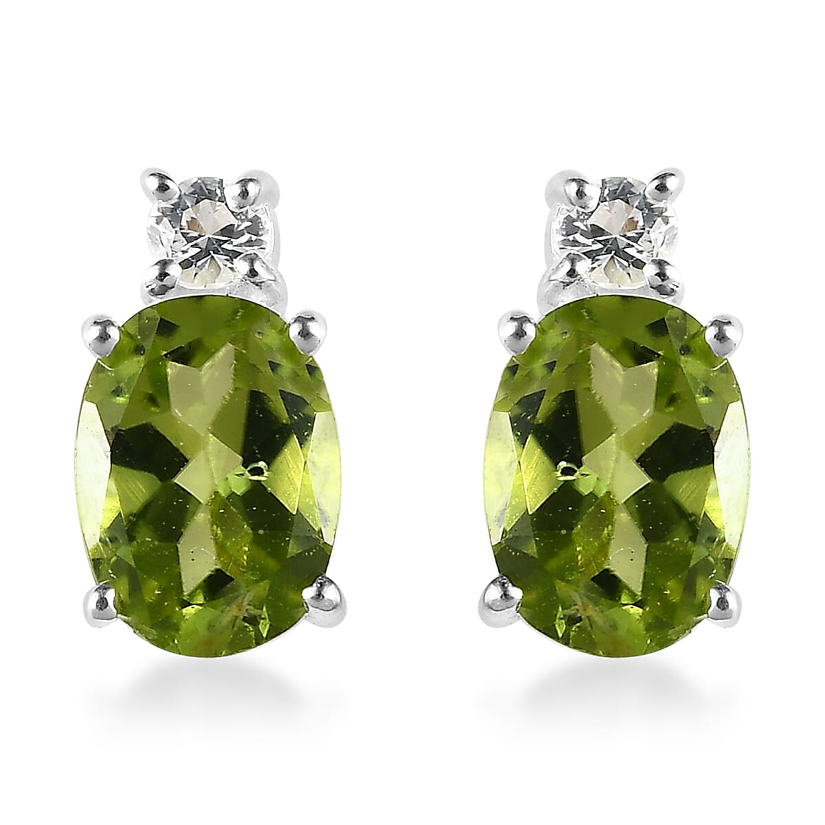 Peridot and White Topaz Stud Earrings in Sterling Silver with Stainless Steel Push 2.00 ctw