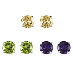 Peridot, Brazilian Citrine and Amethyst 2.75 ctw Set of 3 Solitaire Stud Earrings in Sterling Silver