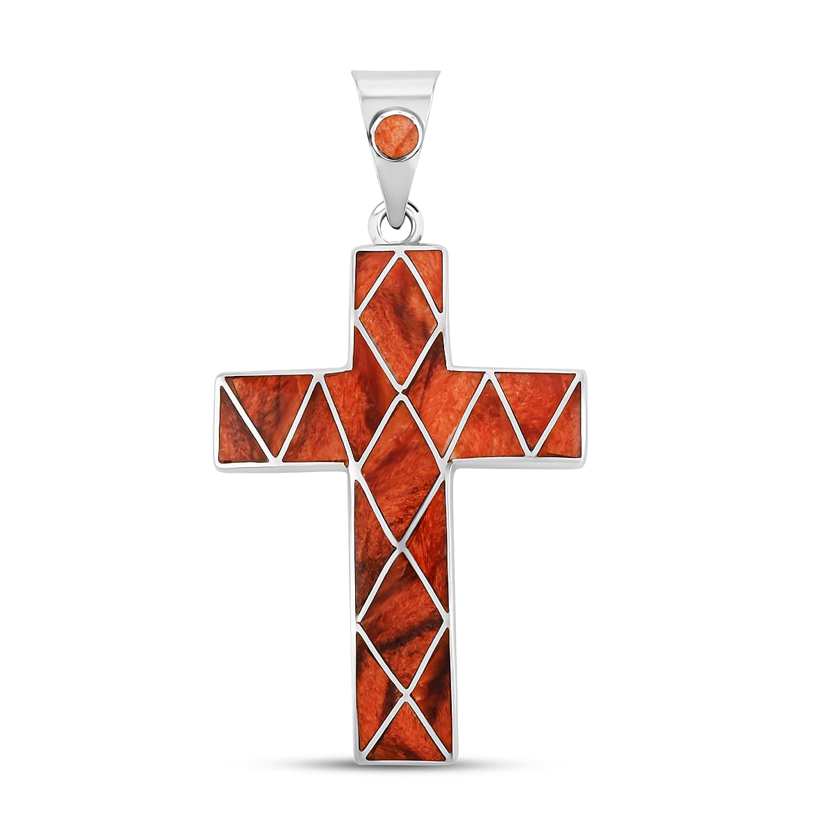 Peruvian Artistry Multi Gemstone 15.20 ctw Orange Sandoval Big Cross Pendant in Sterling Silver